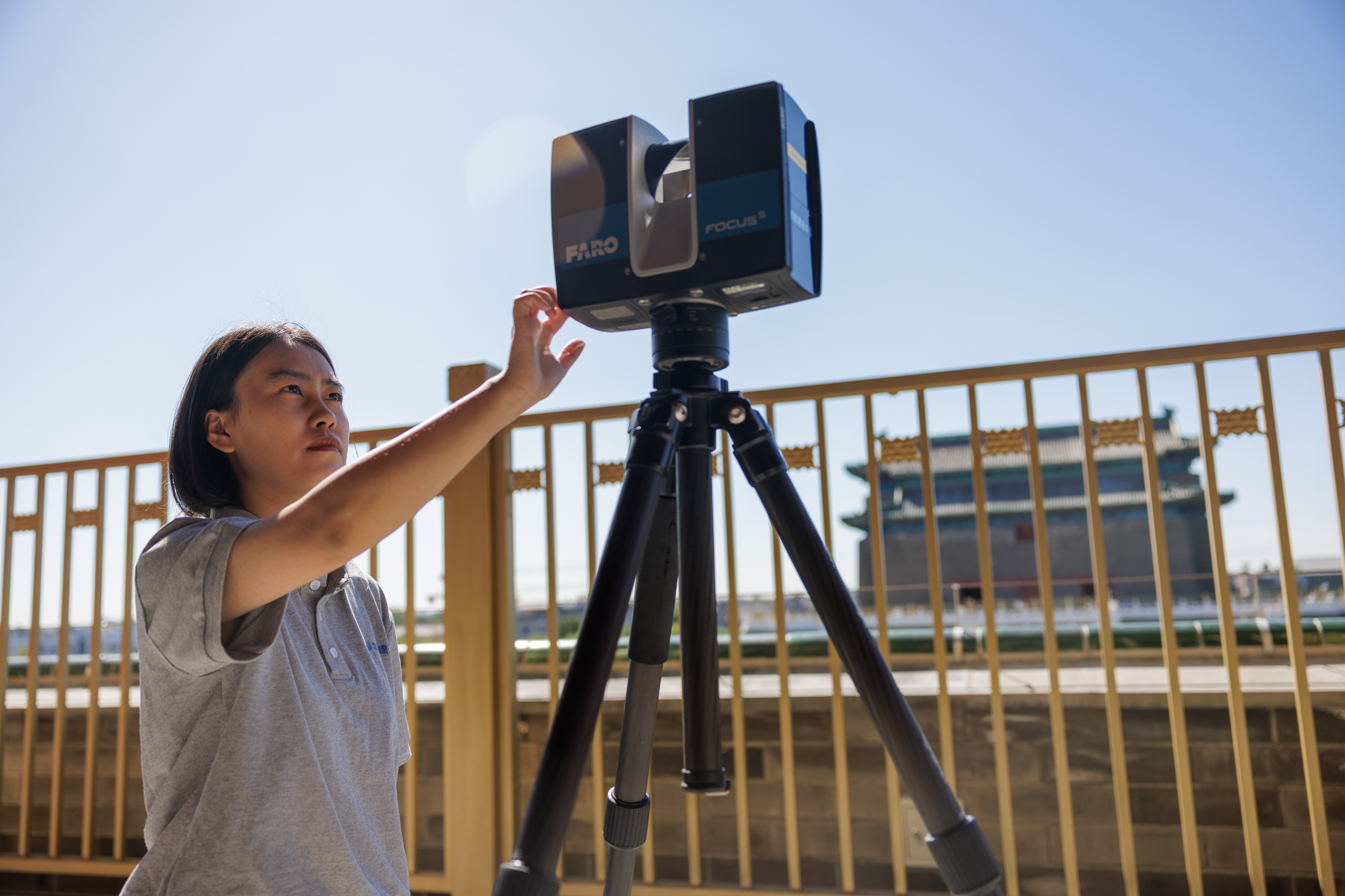 陈亮介绍,正阳门在历史上多次受损,现存的建筑是在1902年烧毁重建,由于工部所存的城门档案一同烧毁,最终按照崇文门形制放大后重建。历史上,正阳门城楼的构造仅有二维数据,这次在修缮的同时,通过三维激光扫描技术——又称实景复制技术,利用高速激光扫描测量得到130亿个坐标点,从而复建出了1:1比例的高精度三维城楼数据,让城楼得到自己的完整电子复刻像。