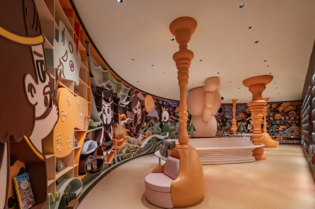 假如你走进这儿就会发现——神话不再是悠远的故事,而是触手可及的立体画卷。钟书阁儿童区将“混沌初开”的宇宙观进行物理化的出现。