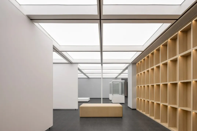 褪去繁复的雕饰,抽象化的梁柱与斗拱凭仗极简曲线勾勒力学之美,铸就承载万千典籍的骨骼。当指尖轻抚过肌理,这触感,似乎连接着尧舜年代的晨曦,也融汇着新年代的星光。